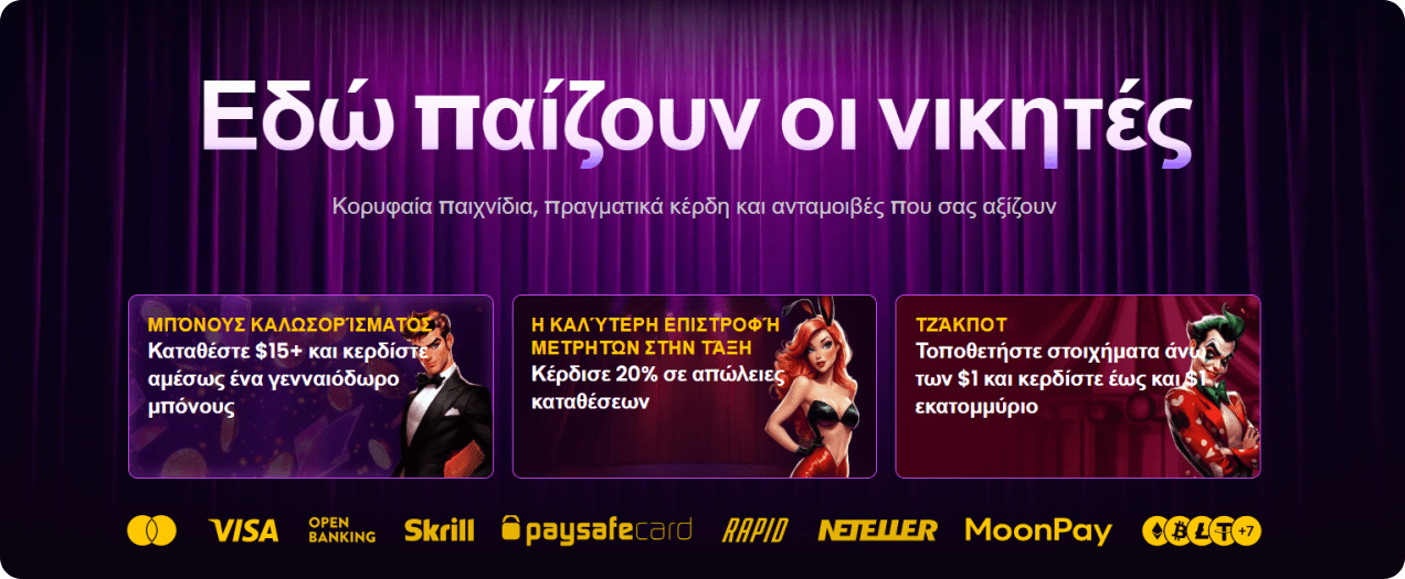 Και για νέους παίκτες, το μήνυμα καλωσορίσματος είναι απλό: μεγάλα μπόνους, πιστοποιημένοι πάροχοι και εύκολες αναλήψεις.